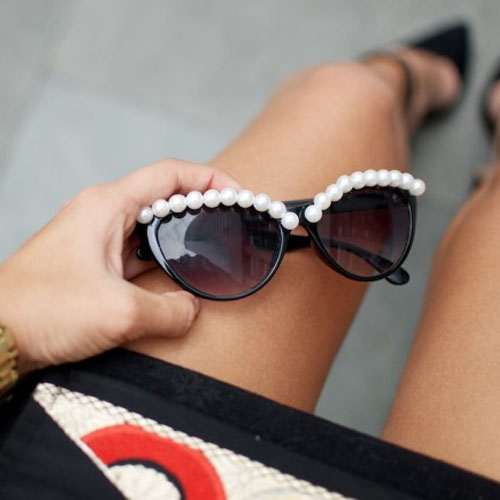 ไข่มุกคือช่วยเพิ่มความหรูหราไฮโซให้กับกรอบแว่นได้ดีเลยค่ะ ใครอยากได้ลุคเก๋ๆ เริ่ดๆ แนะนำให้จัดกรอบแว่นไข่มุกเลยจ้า แต่ต้องแต่งตัวให้เข้ากันด้วยค่ะ จับคู่กับเดรสสักตัวจะดูเป็นผู้หญิงมากขึ้น หรือจะใส่คู่กับลูกไม้ก็ดูเก๋ไม่หยอก แต่ไม่แนะนำให้ใส่ตอนแต่งตัวสบายๆ อย่างเสื้อยืดกางเกงยีนส์ เพราะจะดูเหมือนขโมยแว่นแม่มาใส่ค่ะ