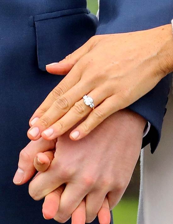 แหวนหมั้นนั้น เจ้าชายแฮร์รี่ทรงออกแบบเอง โดยใช้เพชรเม็ดกลางจากบอสตานาที่ทั้งคู่เคยมีความทรงจำด้วยกันและเพชรที่ล้อม 2 ข้าง เคยเป็นของเจ้าหญิงไดอาน่ามาก่อน ซึ่งทำให้รู้สึกว่า เจ้าหญิงไดอาน่าทรงอยูเคียงข้างเสมอ