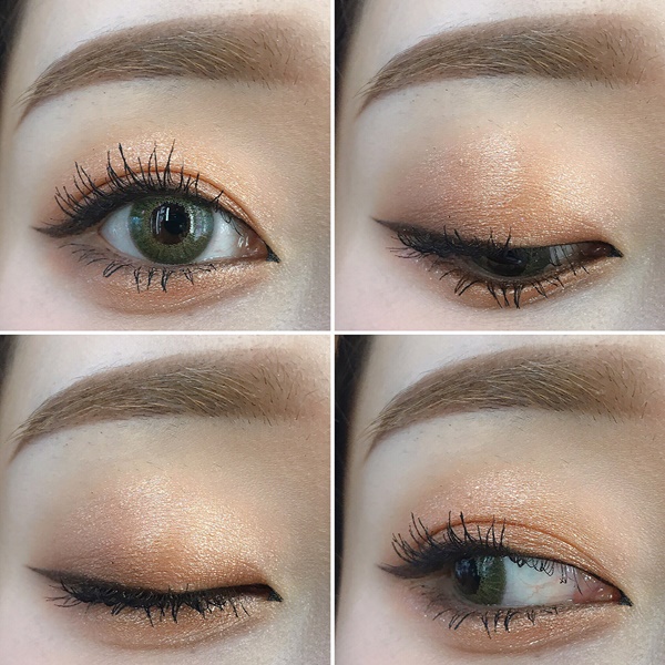 - ดัดขนตา ปัดมาสคาร่า เติมอายไลเนอร์สีทองวิ้งๆ ที่หัวตาเข้ามาถึงกลางตา ก็ได้ลุคแบบที่กำลังฮิตอยู่เลย