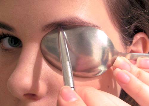 ใครเบื่อคิ้วตรงแบบเกาหลี แต่อยากได้คิ้วโค้งกำลังดีให้ดูเป็นสาวมั่น ลองเอาช้อนมารองใต้คิ้ว แล้วลากเส้นคิ้วตามเบาๆ ให้เป็นทรง เอาช้อนออกแล้วเขียนคิ้วแต่งความโค้งให้พออดีกับที่ต้องการ จากนั้นใช้แปรงเบลนด์สีให้เนียน แค่นี้ก็ได้คิ้วสวยแบบง๊าย ง่าย