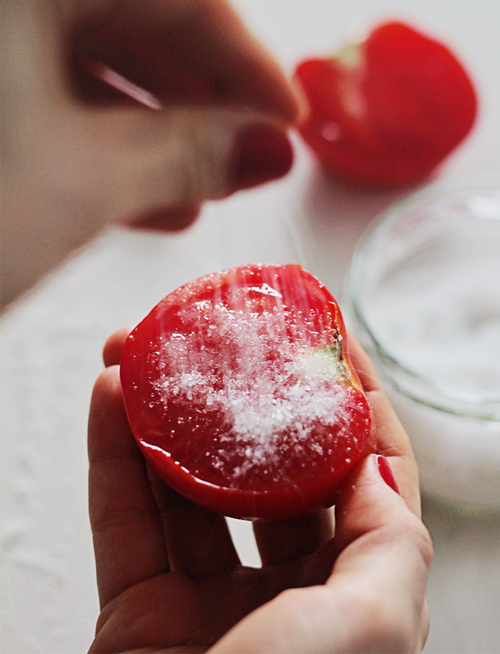2. สครับมะเขือเทศและน้ำตาล