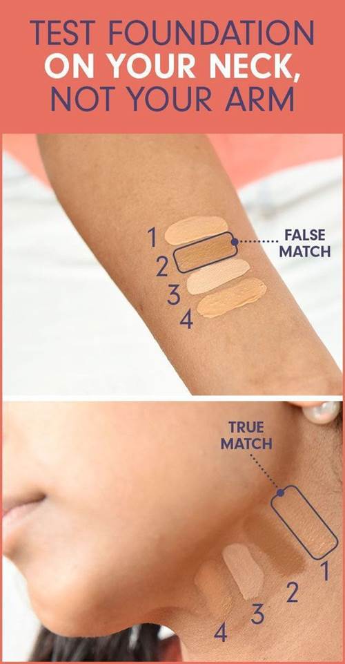 การเลือกรองพื้นให้สีรนองพื้นเข้ากับสีผิว เราจะไม่ทดลองรองพื้นบนมือ ข้อมมือกันนะคะ เราจะลองรองพื้นบริเวณลำคอที่ชิดใบหน้าที่สุด แล้วหันด้านที่ลองรองพื้นเข้าหาแสงไฟ ถ้าเฉดไหน กลืนกับสีผิวที่สุด ก็ซื้อสีนั้นมาเลยค่า