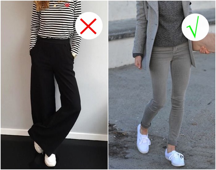 หากอยากใส่กางเกงคู่รองเท้าผ้าใบให้ขาดูเรียว เลือกเป็นกางเกงแบบสกินนี่พอดีตัว และชายกางเกงไม่คลุมขาดีกว่าค่ะ เลือกโทนสีเรียบๆ และทึบเล็กน้อย จะยิ่งทำให้ได้สไตล์และพรางขาให้ดูเล็กได้ดีกว่าน้า