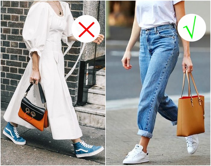 อยากแต่งตัวให้ดูง่ายๆ เรียบร้อยก็ไม่ควรจับคู่ชุดที่ดูวินเทจมากไปกับรองเท้าผ้าใบนะคะ อย่างชุดสีเรียบๆ ที่ตัวใหญ่ หรือแฟชั่นที่ดูแต่งเยอะๆ เป็นเลเยอร์หลายชั้นเป็นต้นค่า