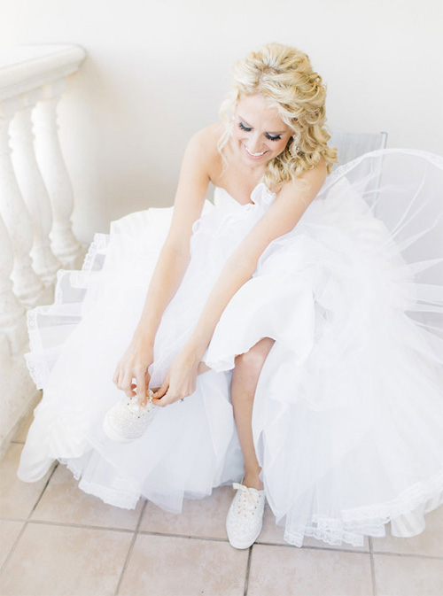 สำหรับสาวที่ต้องการความสดใส ซาบซ่าในวันสำคัญ แนะนำเป็นรองเท้าผ้าใบสีสันสดใสเลยค่า จะสีแดง เหลือง เขียว อะไรก็ได้เอาที่ชอบ หรือจะชวนเจ้าบ่าวมาใส่ด้วยก็เก๋นะจะบอกให้!