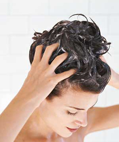 – หลังจากที่หวีผมจนรู้สึกได้ว่า ผมไม่พันกันแล้ว ยังก้มหัวไว้นะคะ ก็เอาน้ำราดลงบนเส้นผมเลยค่ะ ถ้าได้น้ำอุ่นในตอนแรกจะดีมากเลย เพราะอุณหภูมิของน้ำจะช่วยเปิดรูขุมขนทำให้สระได้สะอาดมากขึ้น