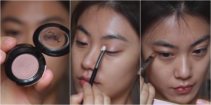 ขั้นตอนที่ 5. ใช้อายแชโดว์ NYX hot singles eyeshadow สี Innocent ลงให้ทั่วเปลือกตา และใต้ตาบริเวณหางตา