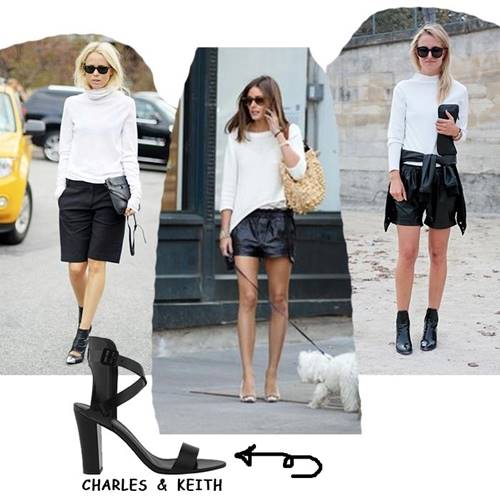 ใส่เสื้อสีขาวคู่กับกางเกงขาสั้นสีดำ แล้วใส่รองเท้าสีดำรัดส้น ก็ออกไปเปรี้ยวได้ชิลๆ