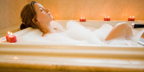 แช่ตัวในอ่างแล้วใช้เกลือขัดผิวเบาๆ ก็ช่วยขจัดเซลล์ผิวเสียออกแล้วยังช่วยให้ผ่อนคลายด้วยกลิ่นหอมได้อีกด้วยค่า อย่าลืมวางเครื่องดื่มเย็นๆ เอาไว้ใกล้ๆ ด้วยนะคะ เท่านี้ก็ช่วยผ่อนคลายร่างกายได้เต็มที่ พอใจแล้วก็ลุกขึ้นอาบน้ำต่อได้ค่ะ