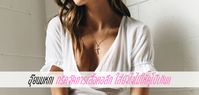 เรื่องเสื้อผ้ากับผู้หญิงจัดว่าเป็นของคู่กันค่ะ สาวบางคนบ้าช็อปมาก คือซื้อเสื้อผ้าสัปดาห์ละครั้งเลยซิส แล้วเดี๋ยวนี้เค้าก็อินเทรนด์แบบฝ. หน่อยๆ โชว์หุ่นนิดๆ พวกเสื้อคอวี คอกว้างกำลังฮิตเลยจ้ะ แต่ปัญหาคือสาวบางคนซื้อมาแล้วเพิ่งรู้ตัวว่าใส่แล้วนมหก จะให้ทิ้งก็ไม่กล้า เสียดายเนอะ เราเลยเอาทริคจัดการเสื้อคอลึกมาฝาก จะใส่ยังไงไม่ให้ดูโป๊เกินไป ตามมามุงโล้ด!