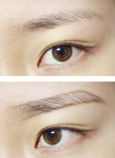 1. วาดทรงคิ้วที่ต้องการ เน้นทรงธรรมชาติ ให้มุมอยู่ประมาณ 1/3 ของคิ้ว