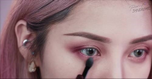 ใช้สีไวน์คัดเบ้า ค่อยๆ เบลนจากนอกเข้าใน ให้ตาดูลึกขึ้น