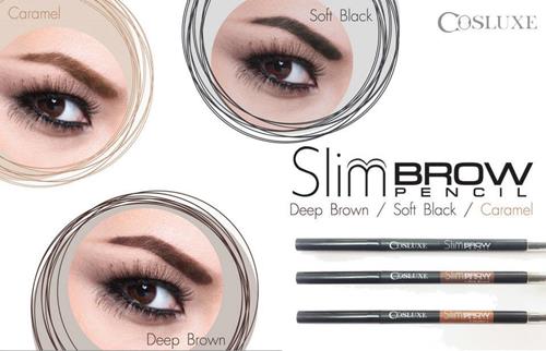 – Cosluxe Slimbrow. หัวแหลมเรียวเล็กที่สุด และเนื้อฝุ่นอัดแข็งที่ติดทนนาน สามารถแรเงาคิ้วได้สวยอย่างเป็นธรรมชาติ