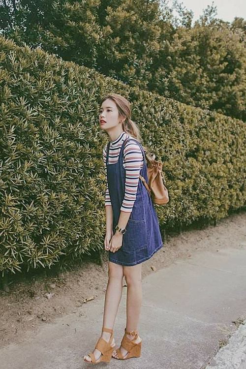 ปิดท้ายด้วยเอี๊ยมยีนส์ที่หยิบขึ้นมาใส่ทีไรก็ดูน่ารัก กระชากวัยได้ทุกครั้ง แถมใส่ง่ายๆ แค่แมทช์กับเสื้อยืดสักตัวก็ได้แล้ว อยากได้ลุคแบบสาวน้อยหวานๆ ก็ให้เลือกเอี๊ยมแบบกระโปรง แต่ถ้าอยากได้ลุคบอยๆ ดูทะมัดทะแมง ก็แนะนำให้เลือกเอี๊ยมแบบกางเกงนะคะ