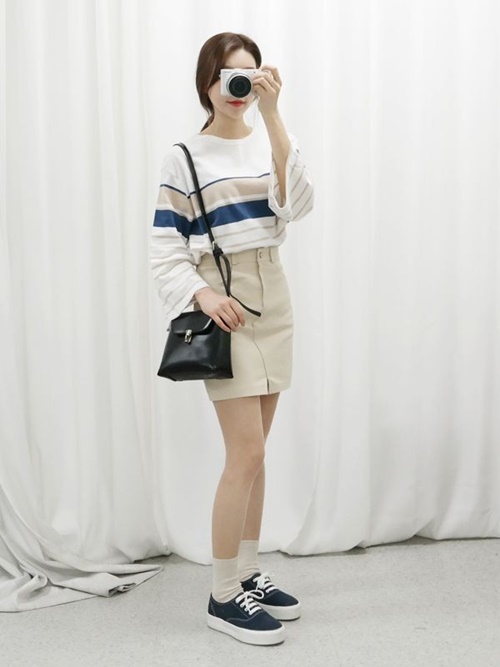 จะเห็นได้เลยว่าเสื้อลายขวางใส่ออกมาได้หลากหลายสุดๆ ไม่ว่าจะกระโปรงหรือกางเกงก็เข้ากัน ขอแอบกระชิบทริคเล็กๆ สำหรับสาวเจ้าเนื้อที่อยากจะใส่เสื้อลายขวางนะคะ แนะนำให้เลือกแบบลายถี่ๆ ยิ่งถี่เท่าไหร่ยิ่งดี เพราะจะช่วยพรางตาให้เราไม่ดูอวบไปกว่าเดิมนั่นเอง เห็นไหมค่ะว่าง่ายๆ แค่นี้ก็สามารถใส่เสื้อลายขวางไปไหนก็รอดแล้ว
