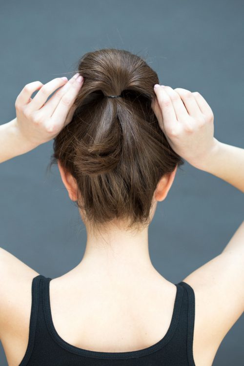 ไม่ต้องกังวลเรื่องของการที่มีผมย้อยมาปิดหน้าปิดตาคุณเวลาปล่อยผมด้วยสไตล์สไลต์ด้านหลังที่เรียบง่ายนี้ ให้แยกผมบริเวณกรอบหน้าออกเป็นสองข้างตามความเหมาะสม หรือความสวยงาม จากนั้นให้นำผมทั้งสองข้างไปมัดไว้ด้านหลังเพื่อให้ผมหน้าของคุณถูกเก็บไว้ไม่ใช้ย้อยออกมา
