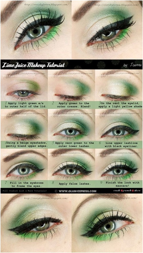 โดยการแต่งตาสีเขียวนั้นเราไม่จำเป็ที่จะต้องทาอายแชโดว์สีเขียวทั้งตา เพียงแต่เราเลือกทามันในบางส่วนแค่นั้นเพื่อให้มันมีความประกายเขียวเล็กๆ ออกมาจากชั้นเลือกตา คุณเพียงแค่แต่งหน้าสโมกกี้อายธรรมตาเลย จะใช้สีน้ำตาล หรือสีเทาเอาก็ได้ และเติมสีเขียวในบางส่วนอย่างที่บอกไป