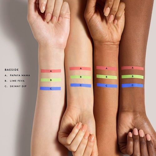 เริ่มกันที่ดวงตาให้สวยโดดเด่นกว่าที่เคย ด้วยการใช้อายไลเนอร์สีนีออน คุณแม่ริริเค้าจัดมาให้เป็นเซ็ต 3 สี โดยมีให้เลือกทั้งหมด 3 เซ็ต ได้แก่ Baecae , Baeside และ Baewatch เป็นอายไลเนอร์หัวพู่กันขนาดเล็ก ทำให้สามารถเขียนได้ชิคโคนขนตา แถมยังเป็นเนื้อแมตต์และติดทนมากอีกด้วย