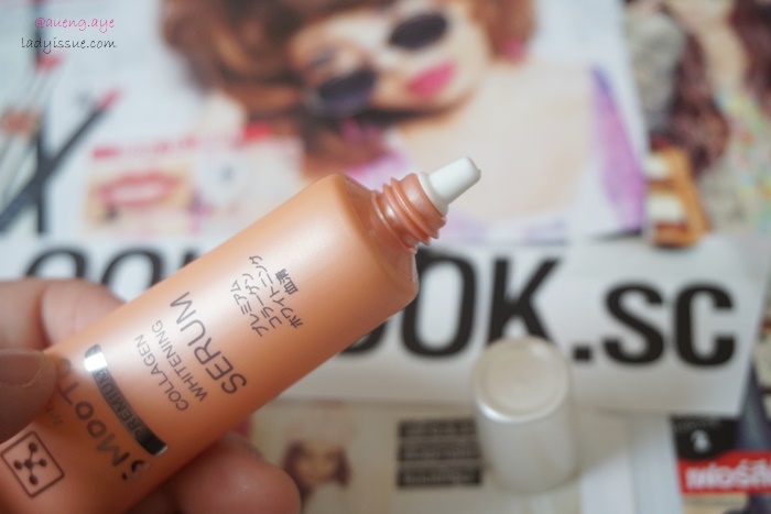 มาลองเทสเนื้อเซรั่มให้ดูกัน เนื้อเซรั่มเป็นเบาๆ ลองทาที่ผิวแล้วรู้สึกเย็นๆ เซรั่มซึมเข้าผิวไวมาก ไม่มีความรู้สึกเหนี่ยวลื่นใดใด เติมความชุ่มชื่นให้ผิวได้ดีมาก ในขณะที่ไม่เพิ่มความมันให้ผิวใดใดทั้งสิ้น เอิงลองใช้มาสองสามครั้งแล้วผิวที่แห้งลอกบริเวณที่เป็นสิวที่ทายาแต้มสิวไว้ดีขึ้นมาก ไม่มีรอยลอกแล้ว และที่สำคัญไม่รู้คิดไปเองหรือเปล่า รู้สึกทาแป้งติดดีขึ้นมาก คงเป็นเพราะเนื้อเซรั่มที่เป็นเจลนั้นแหละ เพราะผิวเอิงถูกกับเนื้อเจลแบบนี้มาก ราคาก็น่ารัก 99 บาทเท่านั้น ถ้าช่วงที่ต้องไปต่างจังหวัด หรือต้องนอนที่อื่นกระทันหันไม่ได้เตรียมตัว ไม่ได้เตรียมครีมบำรุงผิวมา วิ่งเข้า 7-11 ซื้อตัวนี้ไว้คือรอดเลย