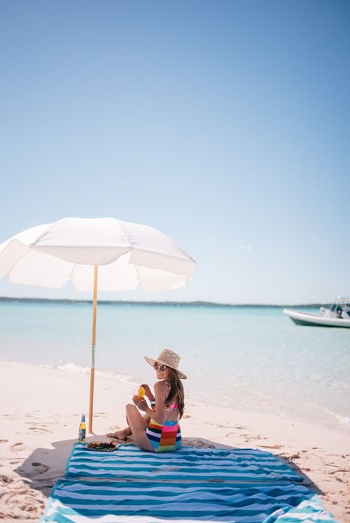 ไหนๆ จะไปทะเลแล้ว งานหาดทราย สายลม ชายหาด ต้องมีนะ! เราก็เลยจะเตรียมพร็อพเป็นผ้าปูสวยๆ ตะกร้าสาน หรือกระเป๋าไปทะเล แล้วก็หนังสือสักเล่ม แว่นกันแดด อาหารหรือแก้วน้ำ และหมวกเก๋ๆ สักใบ มาจัดพร็อพถ่ายรูปบนชายหาดสไตล์ปิคนิคน่ารักๆ แบบไม่ต้องลงทะเลกันค่ะ