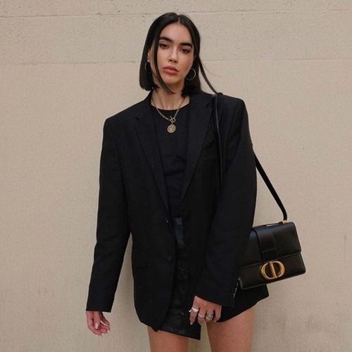 ลุคนี้เหมาะกับสาวเท่และสาวเซ็กซี่ ใครจะแต่งเป็นเดรสเข้ารูปกับรองเท้าบูทส์เก๋ๆ สักคู่ หรือจะเพิ่มออพชั่นกันโป๊อย่างเสื้อคลุมสีดำคุมโทนอีกสักตัวก็ยิ่งเริ่ด กระเป๋าเลือกเป็นกระเป๋าสีดำเรียบง่าย มีแบรนด์ก็ดีไม่มีก็ได้ค่ะ ส่วนใครชอบแบบเท่ๆ ก็ลองเลือกใส่เสื้อยืดบอยๆ กับยีนส์สีดำ ใส่กับรองเท้าบูทส์หรือรองเท้าผ้าใบ ถ้าวันไหนอยากดูหญิงขึ้นมาหน่อยก็เปลี่ยนเป็นรองเท้าส้นสูงได้