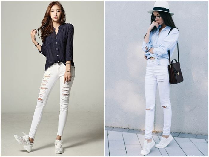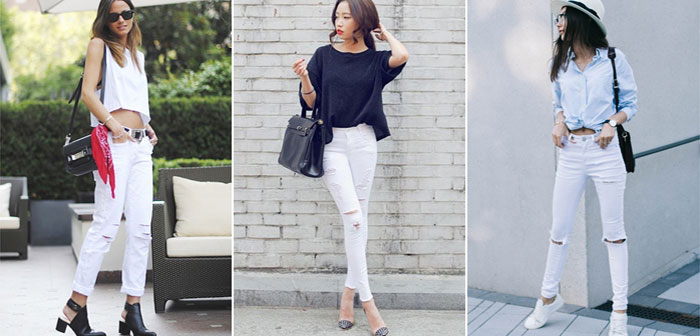 นอกจากกางเกงยีนส์ขาดจะฮอตฮิตเป็นกระแสฟีเวอร์ให้สาวๆ ได้หามาใส่กันแล้ว กางเกงยีนส์สีขาว ก็เป็นอีกเทรนด์ที่กลับมาครองใจเหล่าแฟชั่นนิสต้าคนดังกันอีกครั้ง จะเห็นได้จากงานแฟชั่นวีคตามเมืองใหญ่ๆ ก็จะมีแฟชั่น กางเกงยีนส์สีขาว มิกซ์กับเสื้อผ้าเริ่ดๆ เดินเข้างานกันเป็นแถว แต่ใครที่ยังนึกไม่ออกว่าจะใส่กางเกงยีนส์สีขาวกับอะไรดี วันนี้เรามีไอเดีย Mix & Match กางเกงยีนส์สีขาวแบบสาวแฟชั่นมืออาชีพมาฝากกันค่าา #รีบหามาใส่จะได้ไม่เอาท์