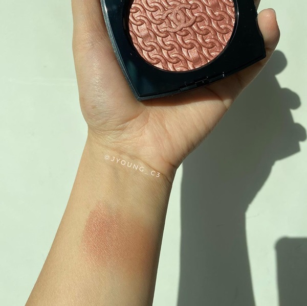 และบลัชรุ่นใหม่ที่เราเอารีวิวมายั่วสาวๆ ให้ใจสั่นไปด้วยกันก็คือ Les Chaînes De Chanel Illuminating Blush Powder เป็นบลัชออนชิมเมอร์ที่มีความโกลว์แบบแพงๆ ปัดแล้วได้แก้มวาวเหมือนสุขภาพดี แต่ไม่เป็นเกล็ดใหญ่ๆ ให้ดูโป๊ะนะคะ คือเนื้อเค้าจะออกแนวกำมะหยี่เบาๆ ปัดแล้วสวยหรูดูแพงมากแม่