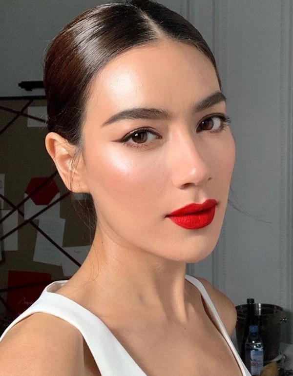 ซึ่งสาวๆ สามารถใช้ลิปสีแดงเฉดที่ชอบได้เลย แต่เราแนะนำว่าถ้าใครอยากได้ลุคแซ่บแบบดูหรูหราขึ้นมาหน่อย ก็ลองเลือกเป็นโทนแดงเบอร์กันดี้ หรือแดงเข้มๆ นิดนึงค่ะ ส่วนใครชอบลุคสวยคลาสสิกหน่อย ก็เลือกลิปสีแดงสดให้เด่นที่สุดในงานไปเลยก็ได้ แล้วแต่งหน้าเบาๆ เน้นโชว์งานผิว ปัดคิ้วให้เป็นธรรมชาติ