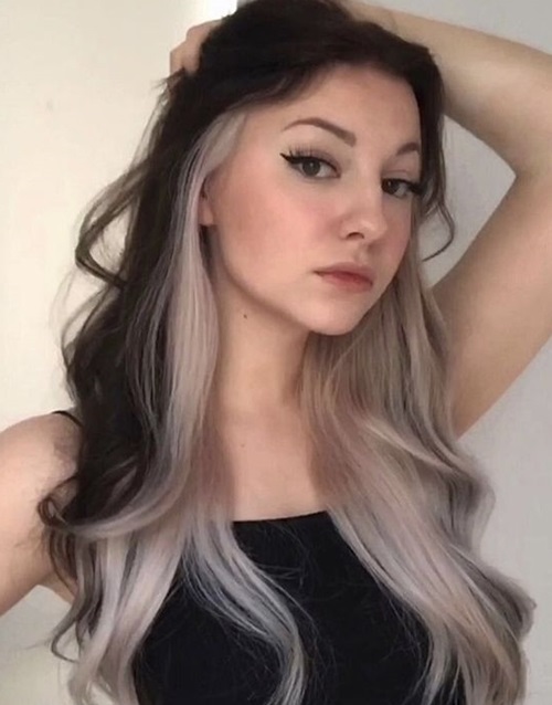 สีที่แนะนำก็คือสีผมทูโทนดำ-ขาว โดยทำสีผมด้านบนให้เป็นสีดำเข้ม หรือสีผมธรรมชาติ แล้วแบ่งเลเยอร์ฟอกสีผมครึ่งในให้ออกขาวหน่อย ยิ่งไม่ติดเหลืองเท่าไหร่ก็ยิ่งดีค่ะ ไม่จำเป็นต้องลงสีอื่นเลย เพราะเป็นคู่สีที่ตัดกันแล้วปังสุดๆ