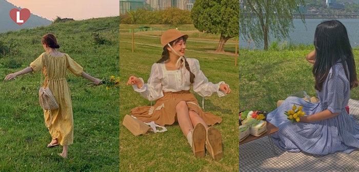 2. เตรียมพร็อพปิคนิค นั่งบนผ้าปูเก๋ๆ ถือช่อดอกไม้หรือขนมก็ได้ หันหน้าชมวิว ทำท่าจับผม เหมือนกำลังเผลอๆ