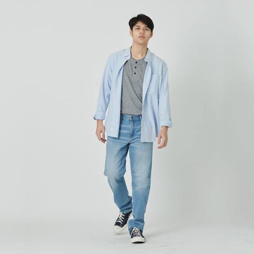 มาที่ลุคของหนุ่มๆกันบ้าง ลุคแรกกับกางเกงยีนส์ Airflex Slim Jean ที่มีเทคโนโลยีเฉพาะของ American Eagle อย่าง Airflex คือผ้ายีนส์สามารถยืดได้สี่ทิศ สามารถสวมใส่ทำกิจกรรมต่างๆได้อย่างสะดวกสบายไม่ติดขัด และทรง Slim นี้ก็เหมาะกับหุ่นของหนุ่มเอเซียเป็นอย่างมาก เพราะด้วยทรงที่จะพอดีไปกับช่วงขาตั้งแต่เข่าลงไป แต่ช่วงต้นขาและเอวจะไม่ฟิตแน่นเหมือนทรง Skinny ทำให้รูปร่างดูสูงโปร่งและเป็นสัดส่วนมากขึ้น แมทช์กับเสื้อยืดเรียบๆสักตัวแล้วคลุมด้วยเสื้อเชิ้ตสีเข้มเท่านี้ก็ได้ลุคนิปปอนบอยแล้ว ส่วนอีกลุคของหนุ่มๆจะเอาใจสายสตรีทสายกิจกรรมกันบ้าง ด้วยกางเกงยีนส์ทรง Athletic Skinny Jean ออกแบบมาพิเศษสำหรับหนุ่มๆที่ชอบออกกำลังกายหรือทำกิจกรรม และมีกล้ามเนื้อช่วงต้นขาค่อนข้างใหญ่ เพราะนอกจากเทคโนโลยี Airflex ที่ใส่มาแล้วยังดีไซน์มาให้ช่วงต้นขาของยีนส์ตัวนี้กว้างกว่ารุ่นอื่นๆ ใส่แล้วไม่รัดต้นขาจนเกินไป เมื่อนำมาแมทช์กับเสื้อฮู้ดดี้และหมวกเท่ๆก็ได้ลุคสตรีทพร้อมลุยในทุกวัน