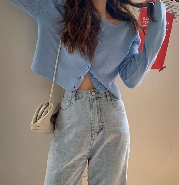 ขาดไม่ได้เลยก็คือลุคเสื้อครอป กับกางเกงยีนส์ขากระบอก หรือจะเป็นท่อนล่างที่คุมโทนสีฟ้าเข้าเซ็ตกันก็ได้ ถ้ากลัวโป๊ลองหาเสื้อคลุมสีฟ้ามาใส่แก้เขิน หรือถ้าอยากได้ลุคหวานหน่อย จัดเดรสไปเลยค่ะ แต่อย่าเลือกที่หวานมากเกินไป แอบเป็นเดรสเข้ารูปหรือเซ็กซี่นิดๆ บ้างก็ได้ ไม่งั้นมันไม่แซ่บอะเนอะ