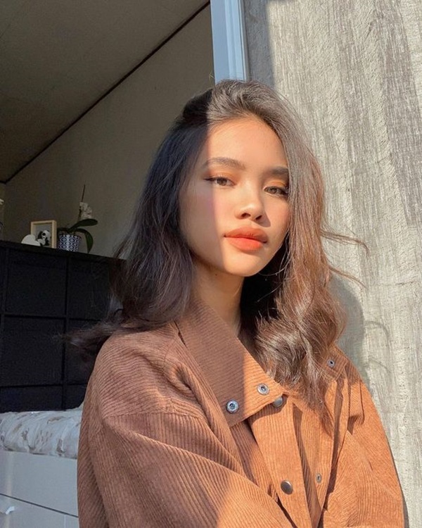 ส่วนสีที่เลือกใช้ก็แนะนำเป็นพวกสีเอิร์ธโทน สีน้ำตาล ส้ม เบจ แดงอิฐ หรืออมชมพูนิดๆ ก็โอเค เพราะจะทำให้ดูสวยเปล่งปลั่งหน้าไม่ซีดเกินไป แต่ยังมีความเป็นธรรมชาติใสๆ อยู่ วิธีแต่งก็ง่ายสุดๆ เลยค่ะ เลือกอายแชโดว์สีที่ชอบ แล้วก็เอานิ้วแตะเบาๆ จากนั้นเกลี่ยให้ทั่วเปลือกตา