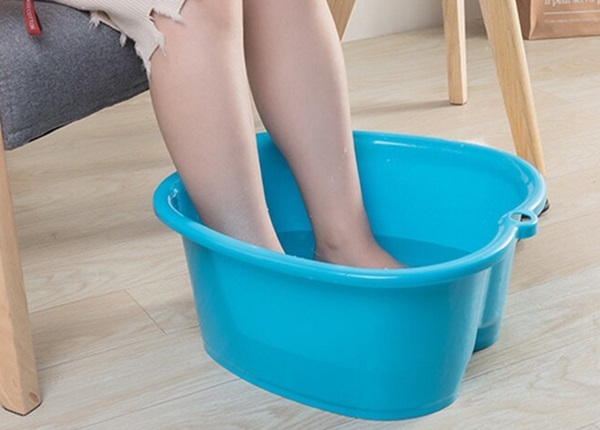การแช่เท้าในน้ำอุ่นเป็นการช่วยให้ผิวหนังกำพร้าอ่อนตัวลงและง่ายต่อการขัดเซลล์ผิวที่ตายแล้วออกไป หากจะใช้รักษาตาตุ่มด้าน ให้ผสมน้ำอุ่นในกะละมัง ในปริมาณที่พอให้ท่วมตาตุ่ม จากนั้นฝานมะกรูดลงไปในน้ำอุ่นเพื่อช่วยให้ผ่อนคลายแล้วแช่เท้าลงไป ระหว่างแช่ค่อยๆ นวดและขัดเบาๆ ด้วยเกลือขัดผิว นอกจากจะช่วยลดอาการตาตุ่มด้านแล้วยังช่วยกำจัดแบคทีเรีย และกลิ่นเท้าเหม็นได้อีกด้วย