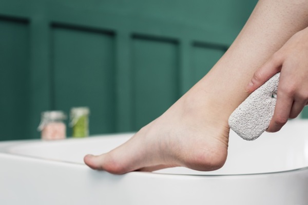 หินพัมมิส เป็นหินที่เกิดจากการประทุของภูเขาไฟแล้วเย็นตัวอย่างรวดเร็วจึงทำให้มีรูพรุนทั้งก้อน และจากที่มีรูพรุนนี้เมื่อนำมาขัดผิว จะช่วยขจัดเซลล์ผิวที่ตายแล้วออกไปอย่างนุ่มนวล โดยหลังจากแช่เท้าในน้ำอุ่นประมาณ 5-10 นาที แล้วใช้หินพัมมิสค่อยๆ ขัดบริเวณตาตุ่มจะให้หนังกำพร้าที่มีสีดำและด้าน ค่อยๆ หลุดออกไปอย่างนุ่มนวล