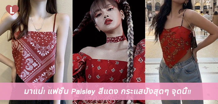 กลายเป็นไอเท็มขายดีประจำ Shopee Lazada และแหล่งช้อปเสื้อผ้าแบบด่วนๆ สำหรับลาย Paisley สีแดง ที่ลิซ่าใส่ในรูปโปรโมทอัลบั้มเดี่ยว มีคนดังเอาไปโคฟกันสุดฤทธิ์ สายแฟถ้าไม่อยากตกกระแสรีบไปหามาใส่ค่ะ จะเป็นเสื้อ กางเกง หมวก ผ้าพันคอ ผ้าผูกผม อะไรก็ได้ที่เป็นลายลูกน้ำ Paisley สีแดง เป็นอันว่าเริ่ด!