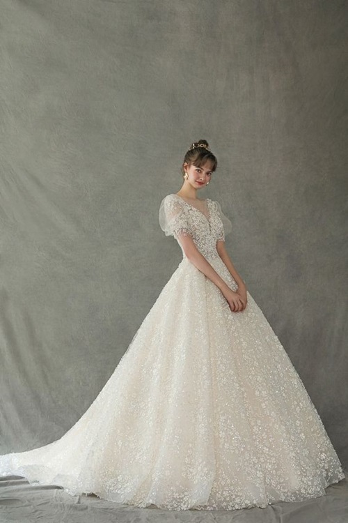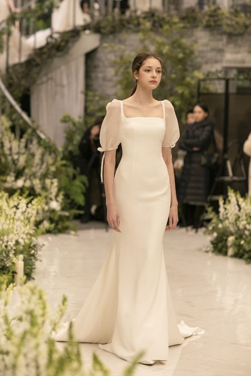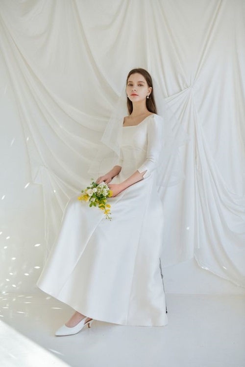 ซึ่งชุดแต่งงานเกาหลีส่วนมากสาวๆ เค้าจะเลือกใส่แนวมินิมอลเรียบง่าย หลายคนชอบแบบเรียบๆ ไปเลย แต่บางคนก็มีดีเทลอยู่นะ พวกงานปัก งานกระโปรงสุ่มอลังการ ก็ยังมีอยู่ แต่เค้าจะเน้นความสวยแพงแบบที่ดูคลาสสิกมากกว่า