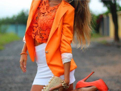 จับชุดสีส้มให้เข้าคู่กับสีขาว ดูไม่แรง แต่เข้ากันดี๊ ดี อย่าลืมสีรองเท้าให้ชุดน้า