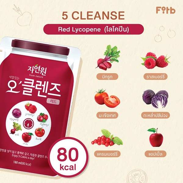 สำหรับ 5’Cleanse (ไฟฟ์คลีนซ์) เป็นนวัตกรรมใหม่ล่าสุดจากเกาหลี ที่สกัดน้ำผักผลไม้มากถึง 23 ชนิด ในอุณหภูมิต่ำ (Low Temperature) ทำให้ยังคงคุณค่าวิตามินของผักผลไม้ไว้ได้ ดื่มง่ายสดชื่น รีเฟรชร่างกายปรับหุ่นฟิตเฟิร์ม ล้างตะกรันไขมันที่ตกค้าง เติมวิตามินและเสริมออร่าให้กับผิว