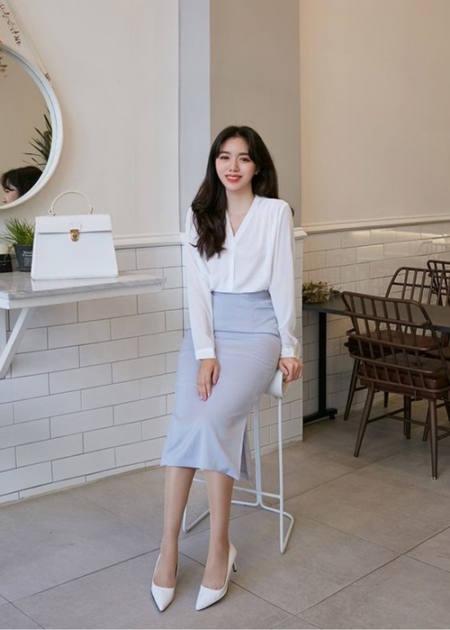 ชุดทำงานสีฟ้า สำหรับสาวๆ วัยทำงาน แนะนำให้เลือกเป็นโทนฟ้าอ่อนพาสเทล จะเข้ากับผิวง่ายและเข้ากับเสื้อผ้าเฉดสีอื่นได้ง่ายด้วย โดยอาจจะเลือกเป็นเสื้อเชิ้ตสำหรับคนที่ต้องการความเป็นทางการหน่อย ใส่กับท่อนล่างสีขาว ดำ หรือสีสุภาพ หรือจะใส่เป็นเซ็ตสูทสีฟ้าสวยๆ เรียบเก๋แบบสดใสๆ ก็ยิ่งทำให้ดูแพงด้วยค่ะ