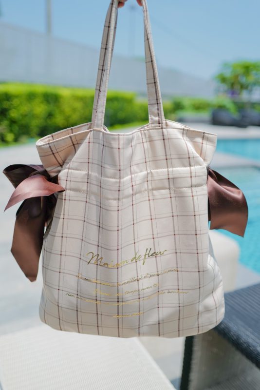 แวะมาอวดกระเป๋าคู่ใจสุดน่ารักที่เค้าใช้ตลอดเลยรุ่น Check Double Ribbon Tote Bag ของแบรนด์ Maison De FLEUR ตัวที่จะรีวิวในวันนี้จะเป็นคอลเลคชั่นใหม่จากทางแบรนด์ ตัวกระเป๋าจะเป็น ดีเทลโบว์คู่สุดคิ้วท์มาก จุของได้เยอะเลย สามารถใส่โน๊ตบุ๊ค หนังสือ มาพร้อมลายพิมพ์โลโก้สีทองที่ดูเหมือนเขียนด้วยช็อกโกแลต แถมมาในโทนสีได้แรงบันดาลใจ จากช็อกโกแลตนม กุหลาบ และไวท์ช็อกโกแลตด้วย แมทช์ได้กับทุกลุคทุกวัย ยิ่งใส่ไปเรียนคือเพิ่มความน่ารักไปอีก