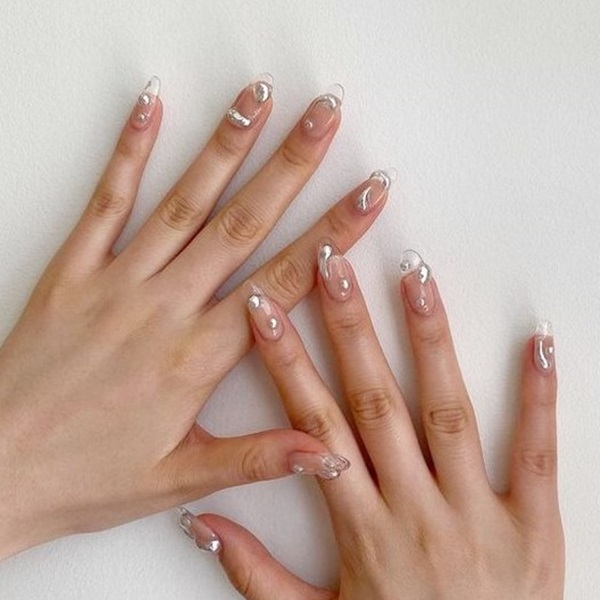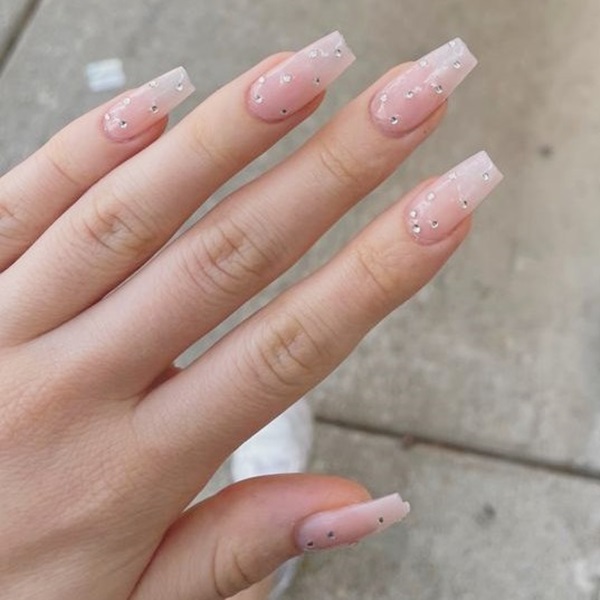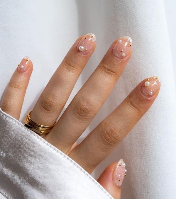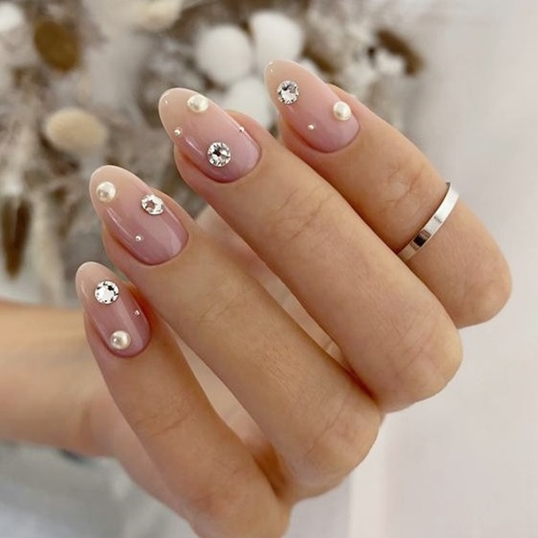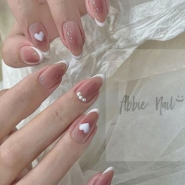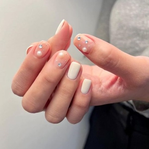 แนะนำให้ทาสีรองพื้นด้วยสีโทนอมชมพูใส หรือสีสุขภาพดี เพื่อให้เล็บดูอมชมพูสวย ไม่จืดเกินไป จากนั้นก็ลงสีขาวในจุดที่ต้องการทำลวดลาย เช่น เฟรนช์ หรือไล่สีช่วงปลายเล็บ และติดเพชรหรือมุกประดับได้เลย ถ้ายังนึกไม่ออก ลองเซฟไอเดียไปบอกช่างกันดูนะคะว่าที่เจ้าสาวทุกคน!