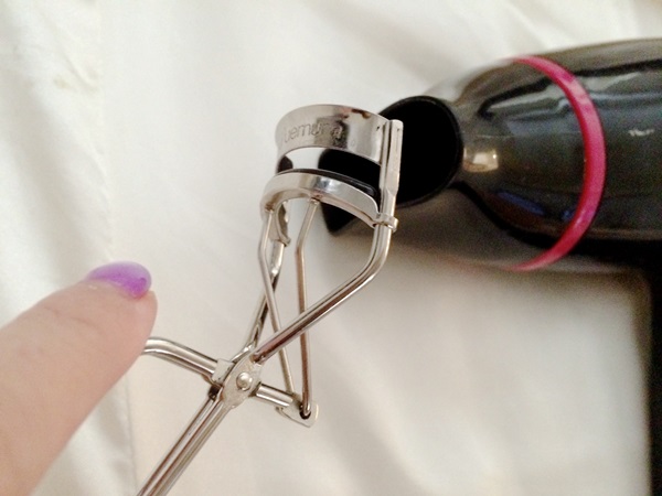 2. ใช้ไดร์เป่าที่ดัดขนตาก่อนดัด