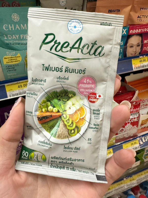 - Preacta ไฟเบอดินเนอ ที่มีทั้งพรีไบโอติก คอลลาเจน ซองเดียวไม่ต้องกินหลายอย่างให้ยุ่งยาก 49 บาท