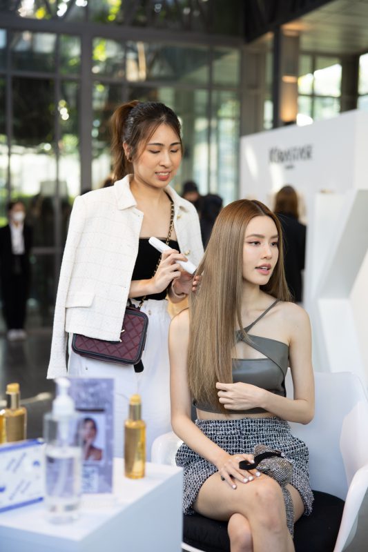 อีกมุมหนึ่งจะเป็นโซนของ Kerastase ป็อปอัพดีไซน์ที่ยก ปารีเซียง ซาลอน สุดเอ็กซ์คลูซีฟ พร้อมนำเสนอการปรนิบัติหนังศีรษะและเส้นผม ผ่านการตรวจวิเคราะห์สภาพเส้นผมและหนังศีรษะ (Hair Consultation & Diagnosis) ด้วยกล้อง “KERASCOPE” ความละเอียดสูง ด้วยเทคโนโลยีที่เหนือขั้น ประกอบกับคำอธิบายจากผู้เชี่ยวชาญในเรื่องของสภาพหนังศีรษะและเส้นผมในระดับ Cellular Level พร้อมแนะนำผลิตภัณฑ์จากเคเรสตาส ให้ผู้ที่เข้าร่วมอีเว้นท์รับสินค้าได้ทดลองใช้กันได้อย่างครบสูตร ทั้งนี้ภายในงานยังมี Photo Backdrop ที่จำลอง Hair Studio ให้ได้สัมผัสเบื้องหลังการถ่ายแฟชั่นเซต อัพเกรดสกิลเป็นซุปเปอร์โมเดลแบรนด์ผมระดับเวิร์ลคลาสอีกด้วย