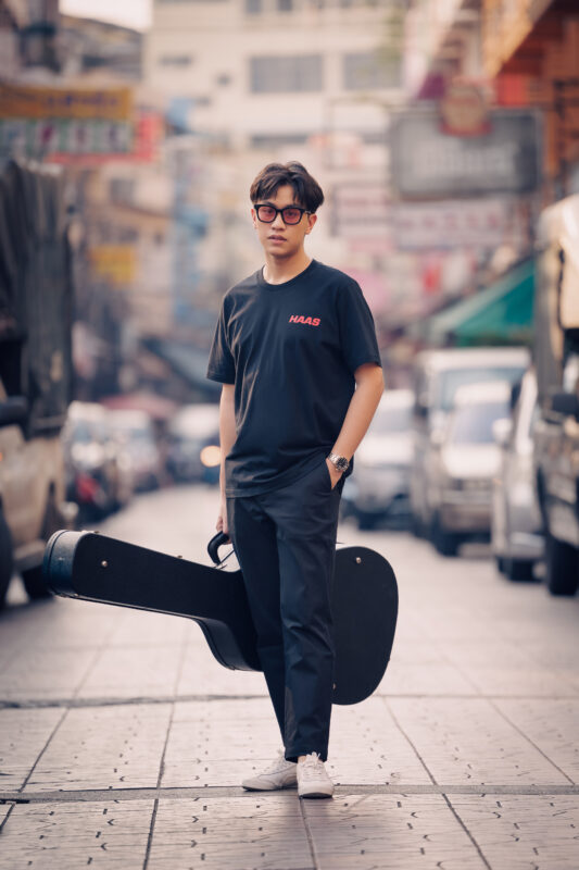 ติวเตอร์ – ฐณวัฒน์ กีรติศรัญวัชร์ คือ ศิลปินหนุ่มรุ่นใหม่ ที่มีชื่อเสียงจากการเล่นดนตรีเปิดหมวกในย่านเยาวราช มีแฟนคลับทั้งนักท่องเที่ยวต่างชาติและชาวไทยสนใจการแสดงอย่างล้นหลาม จนได้รับกระแสนิยมอย่างมาก และทำให้เกิดแฮชแท็ก #ติวเตอร์เยาวราช กลายเป็นไวรัลภาพจำบนโลกโซเชียลอย่างต่อเนื่อง เสน่ห์ความโดดเด่นในแบบฉบับของตนเองที่สะท้อนออกมาจากคาแรคเตอร์ของ ติวเตอร์ สอดคล้องกับแนวคิดของแบรนด์ haas ที่เชื่อว่า “ทุกคนมีบุคลิกที่โดดเด่นของตัวเองอยู่แล้ว” haas จึงยึดมั่นการรังสรรค์แฟชั่นเสื้อผ้าสไตล์ Unisex เนื้อผ้าคุณภาพสูง ดีไซน์ทันสมัย รูปแบบ โทนสี สามารถสวมใส่ได้จริง หลากหลาย ใส่ใจในทุกขั้นตอนการผลิต และราคาคุ้มค่าจับต้องได้ เพื่อให้ทุกเพศทุกวัยได้สนุกกับการมิกซ์แอนด์แมทช์แฟชั่นเสื้อผ้าที่บ่งบอกสไตล์ของตนเองได้อย่างหลากลุคหลายสไตล์