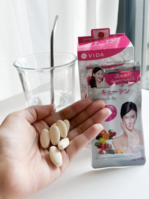 Vida Collagen Q10 : เค้าเป็น Collagen ที่มีสารสกัดช่วยในเรื่องของผิวโดยตรงเลยแม่ จะมีเจนไตรเปปไทด์ คอลลาเจนโมเลกุลเล็ก และ โคเอนไซม์คิวเท็น พรีเมี่ยม จากประเทศญี่ปุ่น พร้อม ทับทิม สารสกัดจากเมล็ดลิ้นจี่ วิตามินซี วิตามินอี นอกจากนี้ยังมี ซิงค์และอัลฟาไลโปอิค