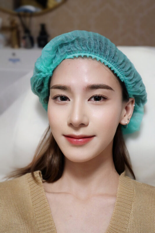 การ Botox เขาจะให้เราเลือกค่ะว่าต้องการทายาชาไหม ถ้าไม่ทายาชาระหว่างการฉีดจะเป็นการเอาน้ำแข็งประคบแล้วค่อยฉีดแต่ถ้าทายาชาก็จะเป็นวิธีเดียวกัน คือน้ำแข็งประคบก่อนฉีดเหมือนกันเลยค่ะ เพียงแต่จะรู้สึกชากว่าจากการทายาชาเท่านั้นเองแต่คนกลัวเข็มอย่างเรามีเหรอจะพลาด แน่นอนค่ะ จีเลือกทาชายา เพราะความกลัวเจ็บล้วนๆ เมื่อเลือกแล้วเราก็เตรียมใส่หมวกให้เรียบร้อย