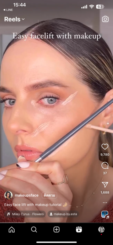จากนั้นตามด้วย Bronzer ลงตามแนวเส้นเดียวกันกับ คอลซีลเลอร์ แต่จะแต้มช่วงบริเวณกรอบหน้าเพื่อทำให้กรอบหน้าดูชัด และยกกระชับขึ้น