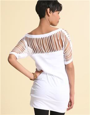 2. เราก็จะได้เสื้อกล้ามที่โหว่วๆตรงพุงใช่มะ จากนั้น กลับด้านหลังแล้วตัดเป็นเส้นตรงๆลงมา ให้ขาดจากกัน ตามภาพค่ะ